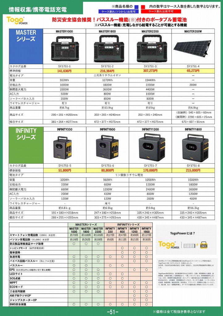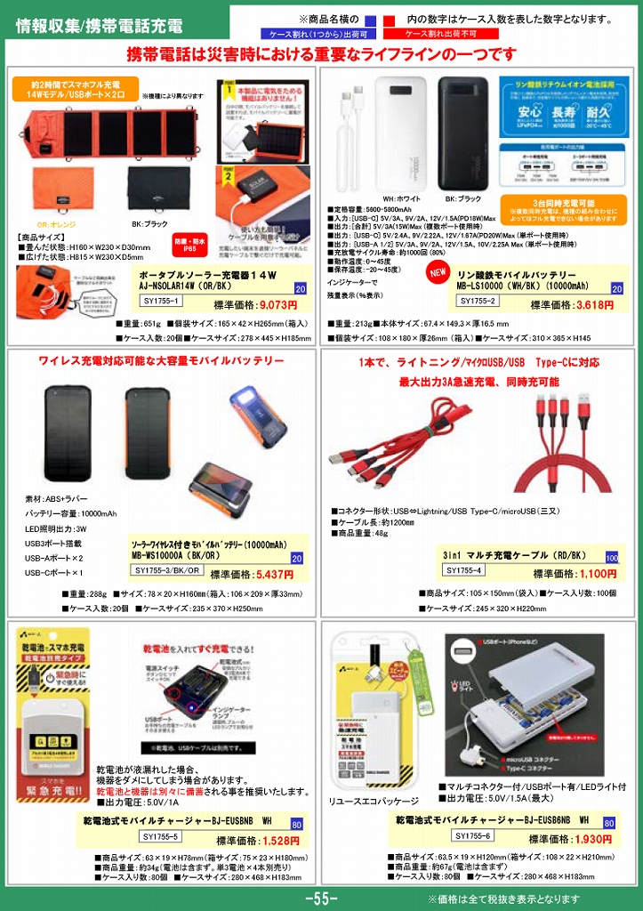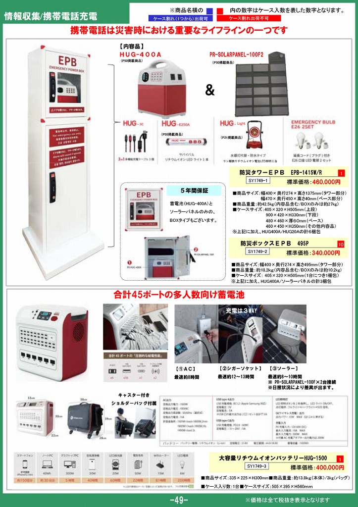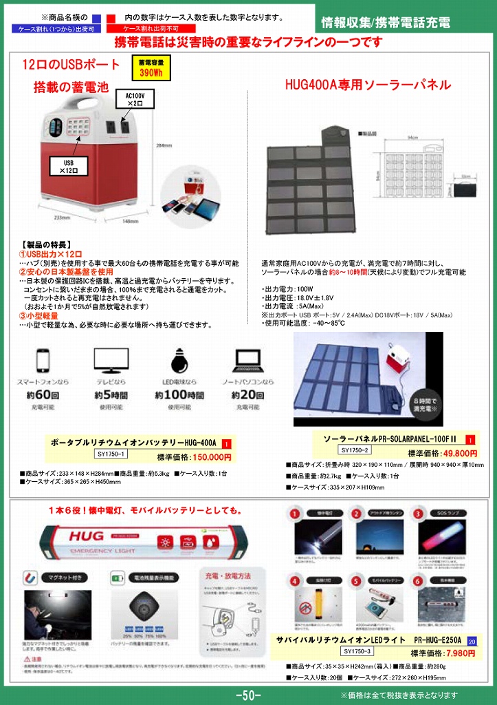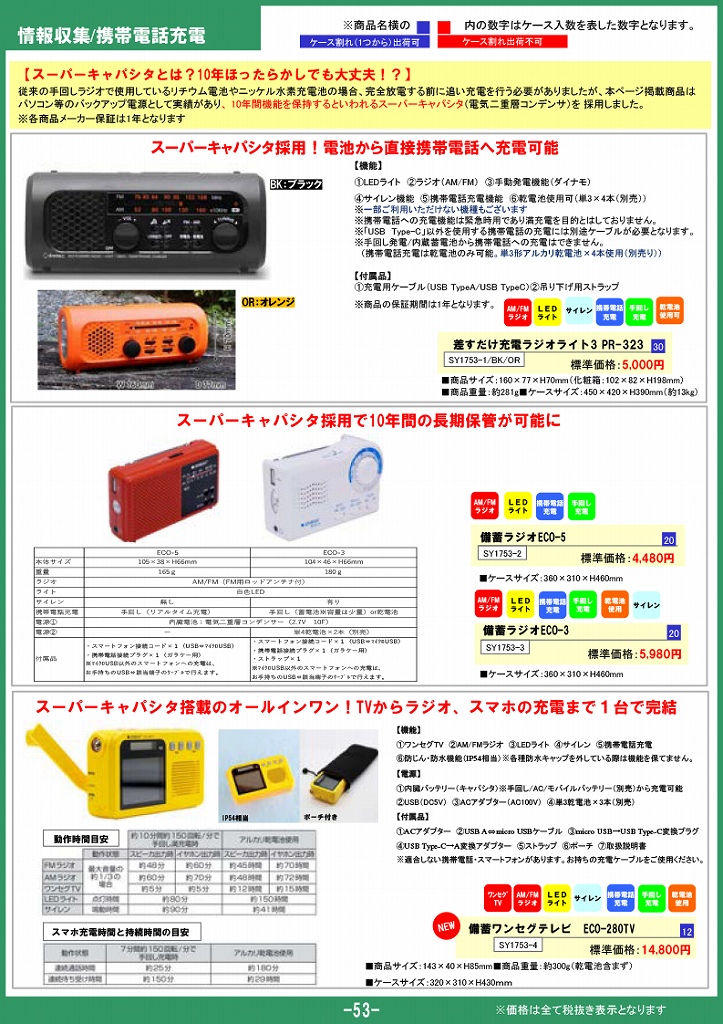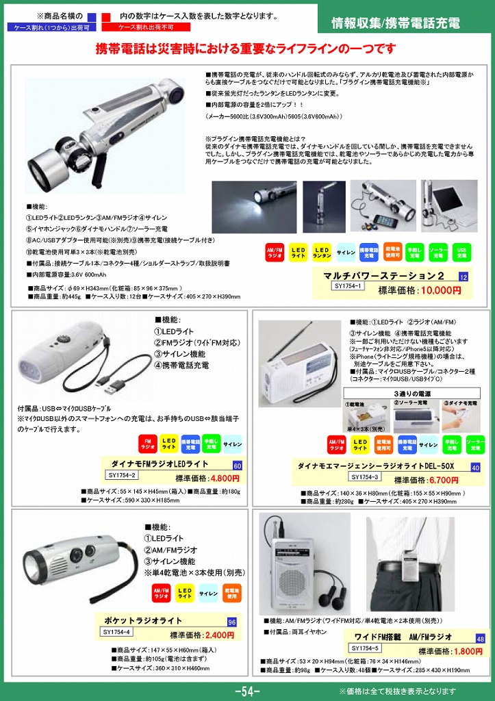 情報集・携帯電話重電機器…携帯電話充電機能付ラジオライト/蓄電池等