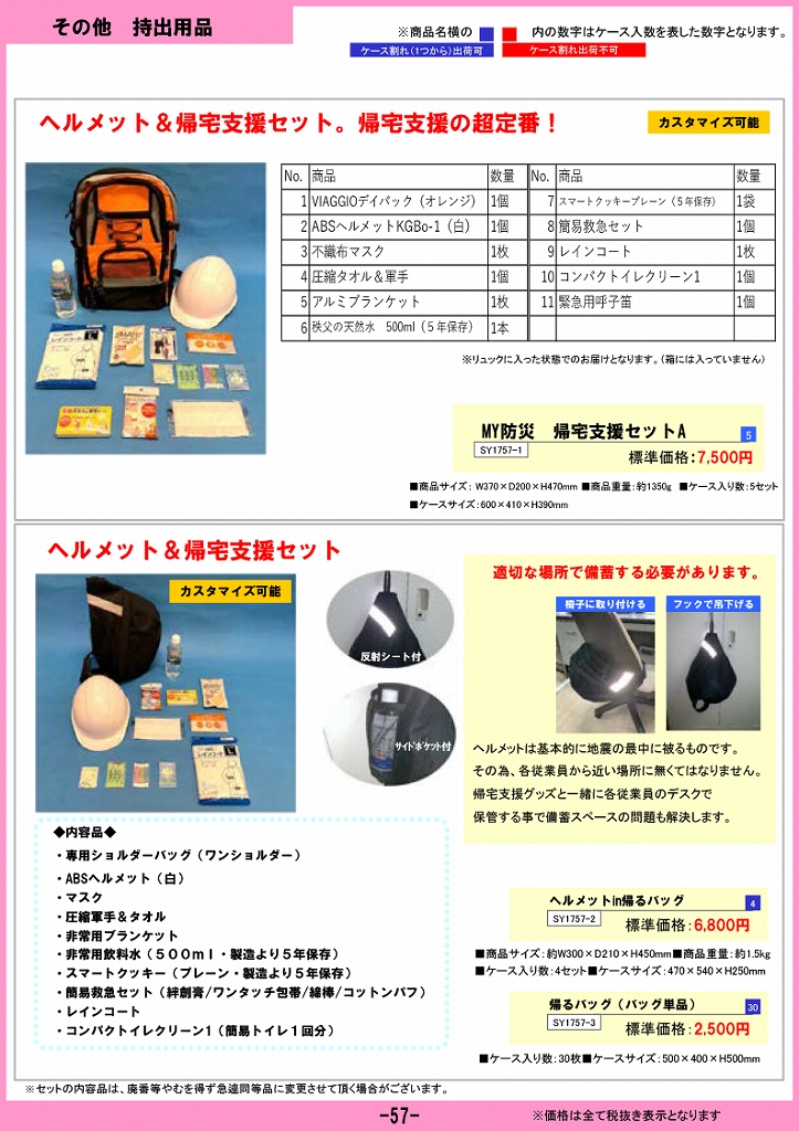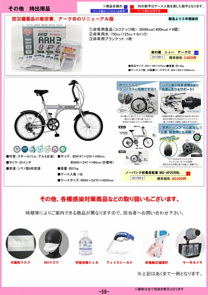 その他特選品…防災セット、非常用持出袋、ノーパンク自転車等