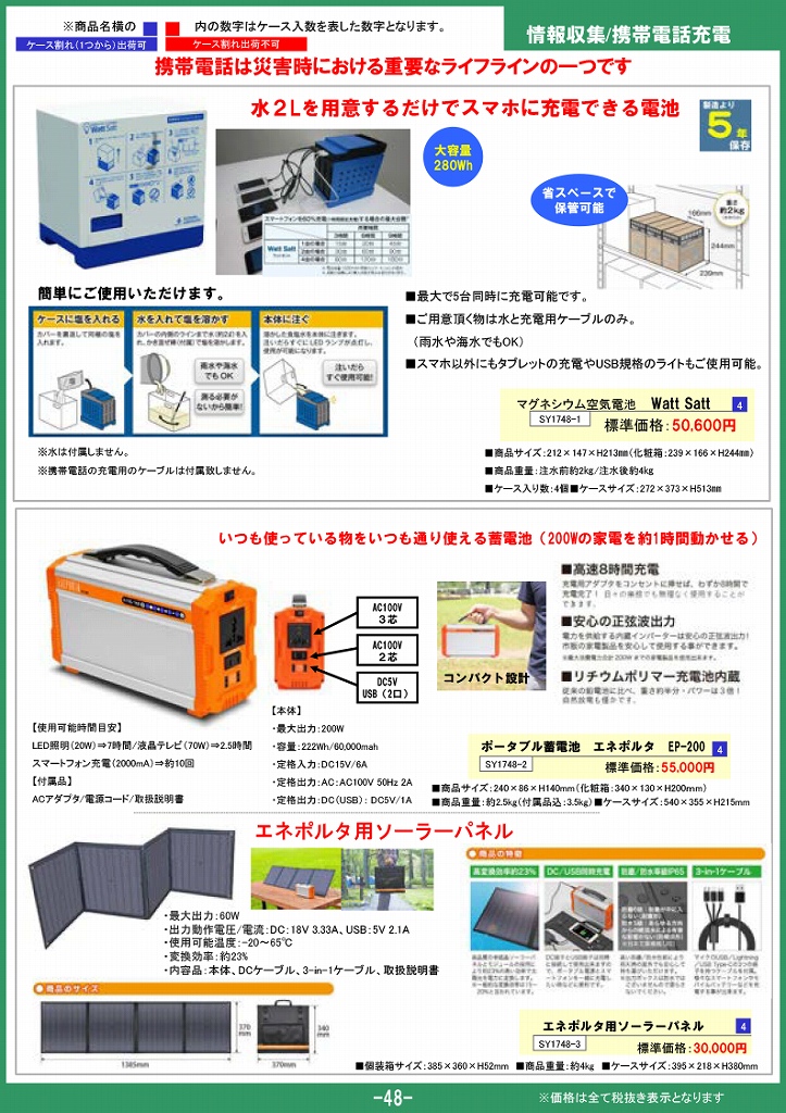 情報集・携帯電話重電機器…携帯電話充電機能付ラジオライト/蓄電池等