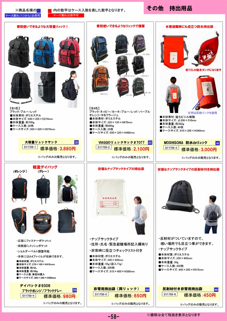 その他特選品…防災セット、非常用持出袋、ノーパンク自転車等